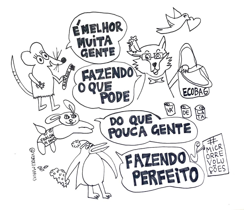 A Clara, a nossa irmã caçula, é claramente do campo das artes. É atriz, escreve poesia e é a nossa ilustradora oficial. Ela tem o dom de traduzir temas sérios e importantes do campo da sustentabilidade para imagens doces e bem-humoradas. Trazemos aqui uma compilação das suas últimas obras.